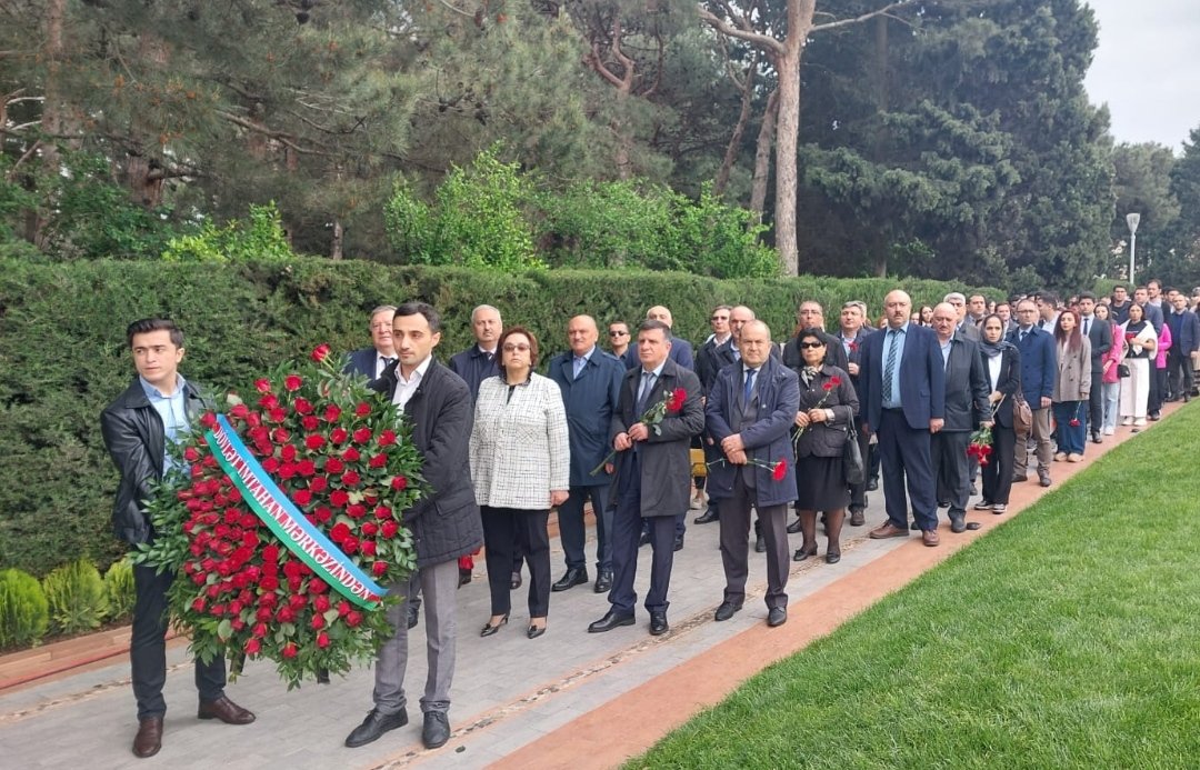 AzMİU-nun kollektivi Ulu Öndər Heydər Əliyevin məzarını ziyarət edib - FOTO